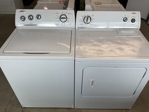 Top load washer with agitator, precise load sizd and water wash temperature, fabric select precise cycles, 12 cycles, 4 speed combinations. Large capacity dryer with timed and auto dry cycles-and wrinkle shield setting, commercial quality set.